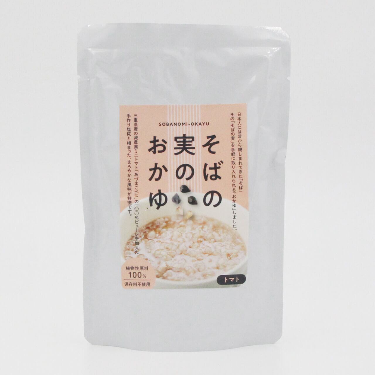 三重県津市の太陽光利用型植物工場で最先端の管理システムとスタッフの方の丁寧な手入れによって生産させるブランドミニトマト「あづまこべに」を使用しました。出荷の中で出てくる少し大きかったり傷がついたミニトマトの活用として生まれたあづまこべにのピューレは、そばの実のおかゆにコクと甘さを加え、上品なリゾットのような味わいになりました。