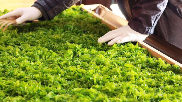 三重の海で育った「あおさ」を加えたレシピ。磯の香りがほんのり香る、食欲をそそる味です。梅ペーストが入り、味がきりっとしまっています。